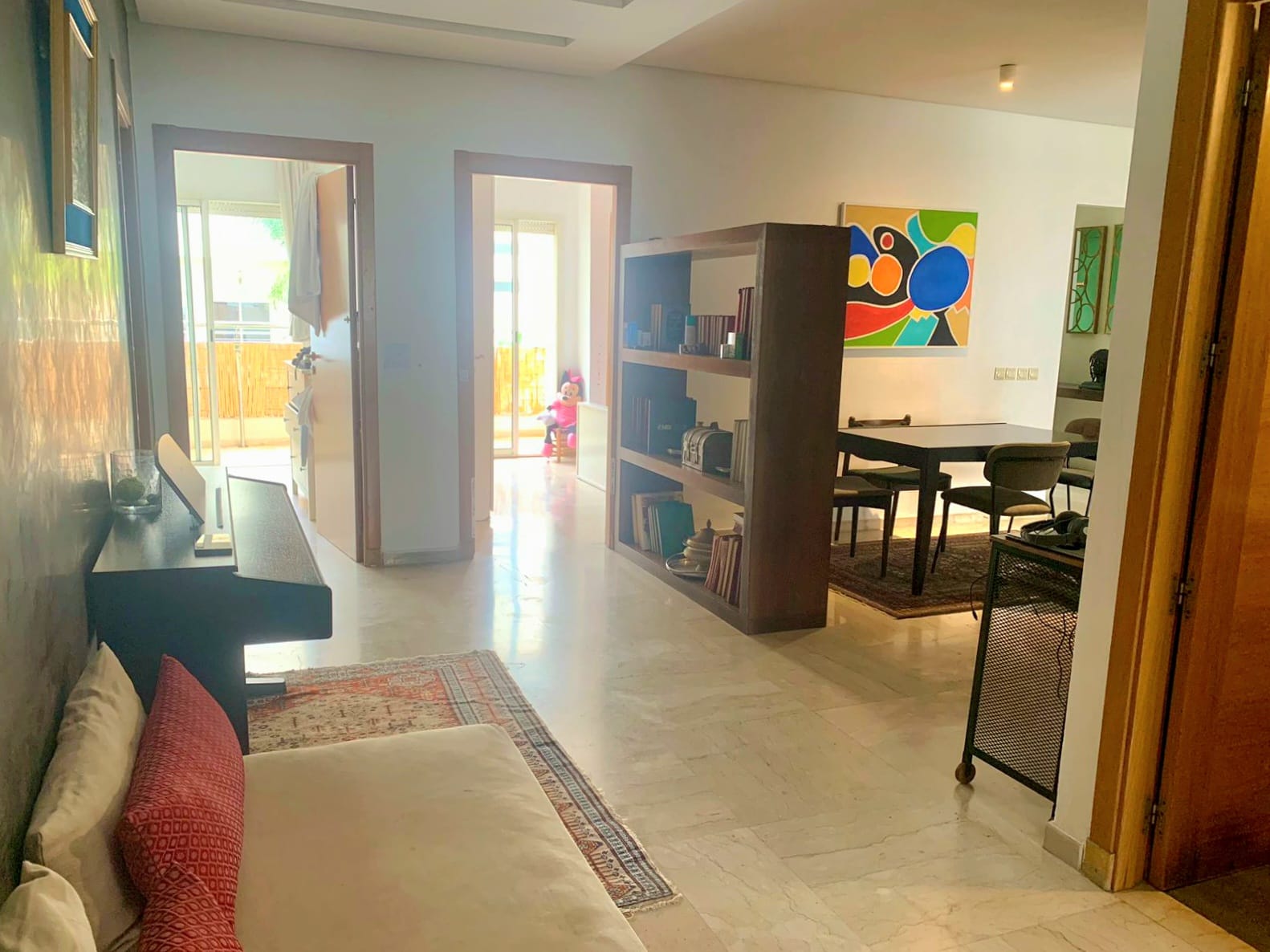 Situé au 2ᵉ étage d’un immeuble haut standing à Ain Diab, l’appartement offre une vue dégagée et une luminosité naturelle exceptionnelle, grâce à son orientation idéale.