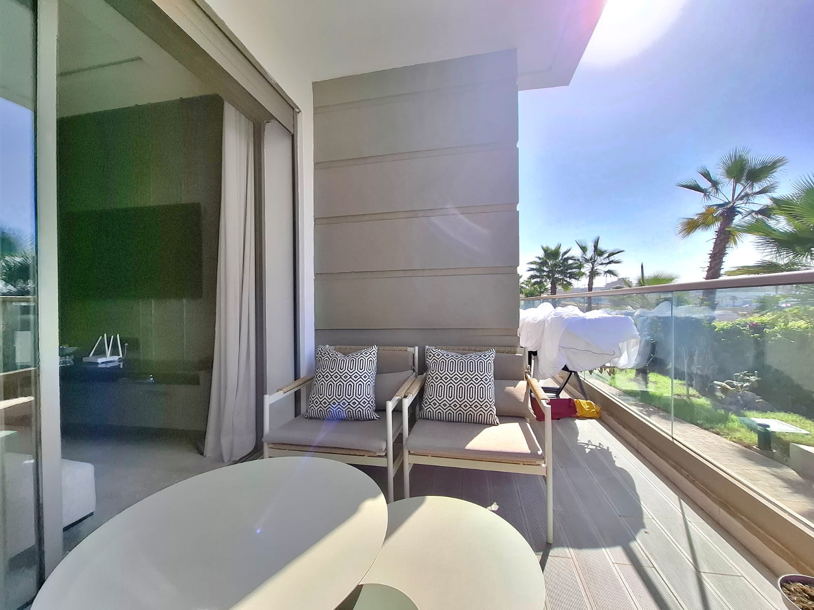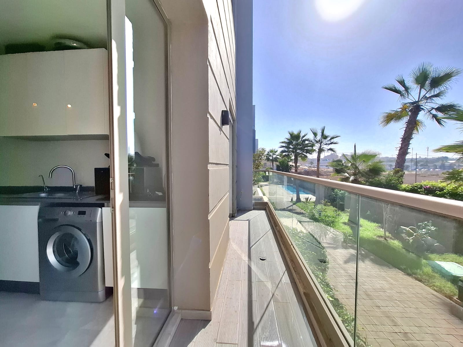 Situé au rez-de-chaussée surélevé d’un immeuble haut standing à Ain Diab Extension, l’appartement offre une vue dégagée et une luminosité naturelle exceptionnelle, grâce à son orientation idéale.